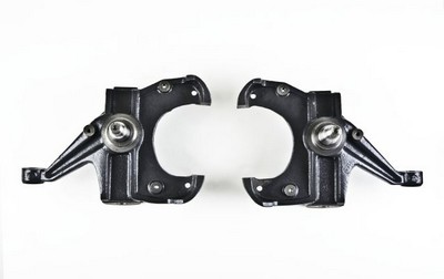 3120 | 1971-72 C10 3 inch Drop Spindle, 1971-72 Chevrolet C10 3 inch Drop Spindle - pair. Our spindles are designed to lower your truck properly with the maximum amount of drop. However, certain wheels with an extreme amount of back spacing (positive offset) will cause interference with an outer edge of the lower A frame. A small 5/16 inch wheel spacer is the best solution to the problem. Some stock 8 inch wide GM Rally Wheels are not recommended for use with our spindles due to the extreme offset. Slight grinding of the A-frame is acceptable. Do not structurally alter the part.