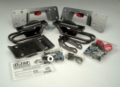 Manufactured by DJM Suspension | FK2599-6 | 1999-00 Chevy 1500 Axle Flip Kit, Priced As Each - Medium Install - Instructions - Yes, The first thing to get off the table regarding “flip kits” is nothing is actually flipped! Simply put a flip kit moves the axle from beneath the leaf spring to on top of the leaf spring. When you place your axle on top of the leaf springs there are two very important things to consider. No. 1 you must move the rear axle back towards the rear of the truck, away from the transmission, around ¾ of an inch. This is done because your drive shaft actually becomes longer when you “flip” your axle. You’ll notice the splined slip joint in the front of your drive shaft. It’s there to allow the drive shaft to move towards and away from the transmission as the suspension cycles up and down. If you were to support your truck by placing jack stands under the frame (both sides) in the rear. Then, with a floor jack supporting the rear end, remove the lower shock bolts and let the rear end down with the floor jack and look at the splined slip joint, you will see a fully extended slip joint. Now slowly jack the rear end up with the floor jack and watch the slip joint contract. If you could jack the rear end up to the point where it was level with the transmission the splines might completely disappear and the drive shaft would be forced into the transmission. This is not a good thing and why you need to move the axle back away from the transmission when you install a “flip kit”. The axle locator brackets accomplish this, generally a “U” shaped piece that sets on the leaf spring, over the center bolt. There is a hole in the factory axle locator which is centered, and you will see that the hole in the axle locator from the flip kit is offset. That is how the flip kit moves the axle back away from the transmission. It is very important to make sure you install the axle locator bracket correctly with the offset hole over the leaf spring center bolt spacing the axle to the rear. Now the second consideration when installing a “flip kit” is pinion angle. The typical drop you can expect from a flip kit is in the 5” to 8” range, depending on the thickness of your leaf spring pack. And while the rear of a pick up truck is designed to operate in a wide range of ride heights (empty to overloaded) it is still necessary to establish an optimal static pinion angle. Axle locating brackets in most flip kits have a built in angle, by having unequal length legs in the “U”. This works pretty good most of the time, but not all trucks are created equal and often you need to adjust the pinion to get rid of a pesky vibration. You can buy pinion “shim kits” that come in 2, 4, and 6 degree packages that need to be installed between your axle locator bracket and the leaf spring. Better that that, DJM makes their flip kits with adjustable axle locator brackets. You have the ability to rotate your axle to the proper angle and then lock it in place. This is the best way to deal with pinion angle. Oh, one more thing about vibrations, if you have a two piece drive shaft and you’re having very low speed vibrations it is almost always caused by the carrier bearing. The bearing where the short front drive shaft and the longer back drive shaft connect. Typically raising this “carrier bearing” up towards the bottom of the bed between ½” to 1” will rid you of this inconvenience. There are kits available for this condition also. Product information updated on 2025-07-28. This product can ship by Courier