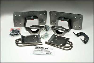 Manufactured by DJM Suspension | FK2699-8 | 2001-04 Chevy 3500 HD Rear Flip, Priced As Each - Medium Install - Instructions - Yes, The first thing to get off the table regarding “flip kits” is nothing is actually flipped! Simply put a flip kit moves the axle from beneath the leaf spring to on top of the leaf spring. When you place your axle on top of the leaf springs there are two very important things to consider. No. 1 you must move the rear axle back towards the rear of the truck, away from the transmission, around ¾ of an inch. This is done because your drive shaft actually becomes longer when you “flip” your axle. You’ll notice the splined slip joint in the front of your drive shaft. It’s there to allow the drive shaft to move towards and away from the transmission as the suspension cycles up and down. If you were to support your truck by placing jack stands under the frame (both sides) in the rear. Then, with a floor jack supporting the rear end, remove the lower shock bolts and let the rear end down with the floor jack and look at the splined slip joint, you will see a fully extended slip joint. Now slowly jack the rear end up with the floor jack and watch the slip joint contract. If you could jack the rear end up to the point where it was level with the transmission the splines might completely disappear and the drive shaft would be forced into the transmission. This is not a good thing and why you need to move the axle back away from the transmission when you install a “flip kit”. The axle locator brackets accomplish this, generally a “U” shaped piece that sets on the leaf spring, over the center bolt. There is a hole in the factory axle locator which is centered, and you will see that the hole in the axle locator from the flip kit is offset. That is how the flip kit moves the axle back away from the transmission. It is very important to make sure you install the axle locator bracket correctly with the offset hole over the leaf spring center bolt spacing the axle to the rear. Now the second consideration when installing a “flip kit” is pinion angle. The typical drop you can expect from a flip kit is in the 5” to 8” range, depending on the thickness of your leaf spring pack. And while the rear of a pick up truck is designed to operate in a wide range of ride heights (empty to overloaded) it is still necessary to establish an optimal static pinion angle. Axle locating brackets in most flip kits have a built in angle, by having unequal length legs in the “U”. This works pretty good most of the time, but not all trucks are created equal and often you need to adjust the pinion to get rid of a pesky vibration. You can buy pinion “shim kits” that come in 2, 4, and 6 degree packages that need to be installed between your axle locator bracket and the leaf spring. Better that that, DJM makes their flip kits with adjustable axle locator brackets. You have the ability to rotate your axle to the proper angle and then lock it in place. This is the best way to deal with pinion angle. Oh, one more thing about vibrations, if you have a two piece drive shaft and you’re having very low speed vibrations it is almost always caused by the carrier bearing. The bearing where the short front drive shaft and the longer back drive shaft connect. Typically raising this “carrier bearing” up towards the bottom of the bed between ½” to 1” will rid you of this inconvenience. There are kits available for this condition also. Product information updated on 2025-07-28. This product can ship by Courier