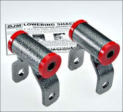 Manufactured by DJM Suspension | SH1092 | 2002-08 Ram 1500 Shackle, Varies between .5 and 1.5 inch drop, Priced As Pair - Easy Install - Instructions - Yes, ear leaf spring shackles are commonly used to “Level” trucks. For those of you who just can’t stand the “stink bug” look of factory stances, the lowering shackle is for you! Typical drop is two inches and fairly simple to install. You simply remove the factory shackle and replace it with a longer drop shackle. Be sure to use the one designed for your particular truck! The leaf spring shackle is located on the rear of the leaf spring and is the only part of the rear suspension that is designed to move. When you hit bumps and dips, which cause the rear end to move up and down the leaf spring actually gets longer and shorter relative to the frame. It is the shackle that pivots forward and back with the leaf spring while being firmly attached to the frame. A good tip when installing shackles is to lubricate the bushings and bolts and be careful to not overtighten. It is possible to tighten so much that the shackle will not pivot, which can cause the truck to ride horribly, and affect ride height. Of course you the pivot bolt needs to be tight and you should use the factory locknut, just don’t set your pneumatic wrench to kill and run it down until it stops! Product information updated on 2025-07-28. This product can ship by Small Parcel