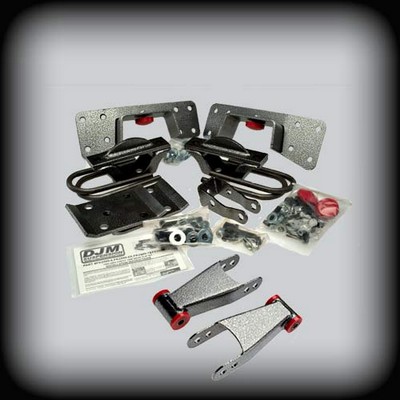 Manufactured by DJM Suspension | FK2599-7 | 1999-00 Chevy 1500 Axle Flip Kit, Priced As Each - Medium Install - Instructions - Yes, The first thing to get off the table regarding “flip kits” is nothing is actually flipped! Simply put a flip kit moves the axle from beneath the leaf spring to on top of the leaf spring. When you place your axle on top of the leaf springs there are two very important things to consider. No. 1 you must move the rear axle back towards the rear of the truck, away from the transmission, around ¾ of an inch. This is done because your drive shaft actually becomes longer when you “flip” your axle. You’ll notice the splined slip joint in the front of your drive shaft. It’s there to allow the drive shaft to move towards and away from the transmission as the suspension cycles up and down. If you were to support your truck by placing jack stands under the frame (both sides) in the rear. Then, with a floor jack supporting the rear end, remove the lower shock bolts and let the rear end down with the floor jack and look at the splined slip joint, you will see a fully extended slip joint. Now slowly jack the rear end up with the floor jack and watch the slip joint contract. If you could jack the rear end up to the point where it was level with the transmission the splines might completely disappear and the drive shaft would be forced into the transmission. This is not a good thing and why you need to move the axle back away from the transmission when you install a “flip kit”. The axle locator brackets accomplish this, generally a “U” shaped piece that sets on the leaf spring, over the center bolt. There is a hole in the factory axle locator which is centered, and you will see that the hole in the axle locator from the flip kit is offset. That is how the flip kit moves the axle back away from the transmission. It is very important to make sure you install the axle locator bracket correctly with the offset hole over the leaf spring center bolt spacing the axle to the rear. Now the second consideration when installing a “flip kit” is pinion angle. The typical drop you can expect from a flip kit is in the 5” to 8” range, depending on the thickness of your leaf spring pack. And while the rear of a pick up truck is designed to operate in a wide range of ride heights (empty to overloaded) it is still necessary to establish an optimal static pinion angle. Axle locating brackets in most flip kits have a built in angle, by having unequal length legs in the “U”. This works pretty good most of the time, but not all trucks are created equal and often you need to adjust the pinion to get rid of a pesky vibration. You can buy pinion “shim kits” that come in 2, 4, and 6 degree packages that need to be installed between your axle locator bracket and the leaf spring. Better that that, DJM makes their flip kits with adjustable axle locator brackets. You have the ability to rotate your axle to the proper angle and then lock it in place. This is the best way to deal with pinion angle. Oh, one more thing about vibrations, if you have a two piece drive shaft and you’re having very low speed vibrations it is almost always caused by the carrier bearing. The bearing where the short front drive shaft and the longer back drive shaft connect. Typically raising this “carrier bearing” up towards the bottom of the bed between ½” to 1” will rid you of this inconvenience. There are kits available for this condition also. Product information updated on 2025-07-28. This product can ship by Courier